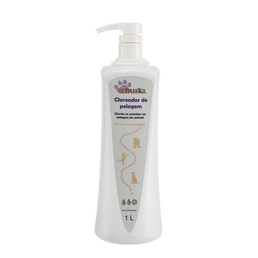 Modo de usar: Após realizar a pré-lavagem do animal, enxaguar bem e aplicar o Clareador de Pelagem Tchuska, massageando bem. ENXAGUAR IMEDIATAMENTE. Aplicar Condicionador Tchuska em animais de pelagem longa e finalizar com Cristal Frizz Tchuska. Finalizar.